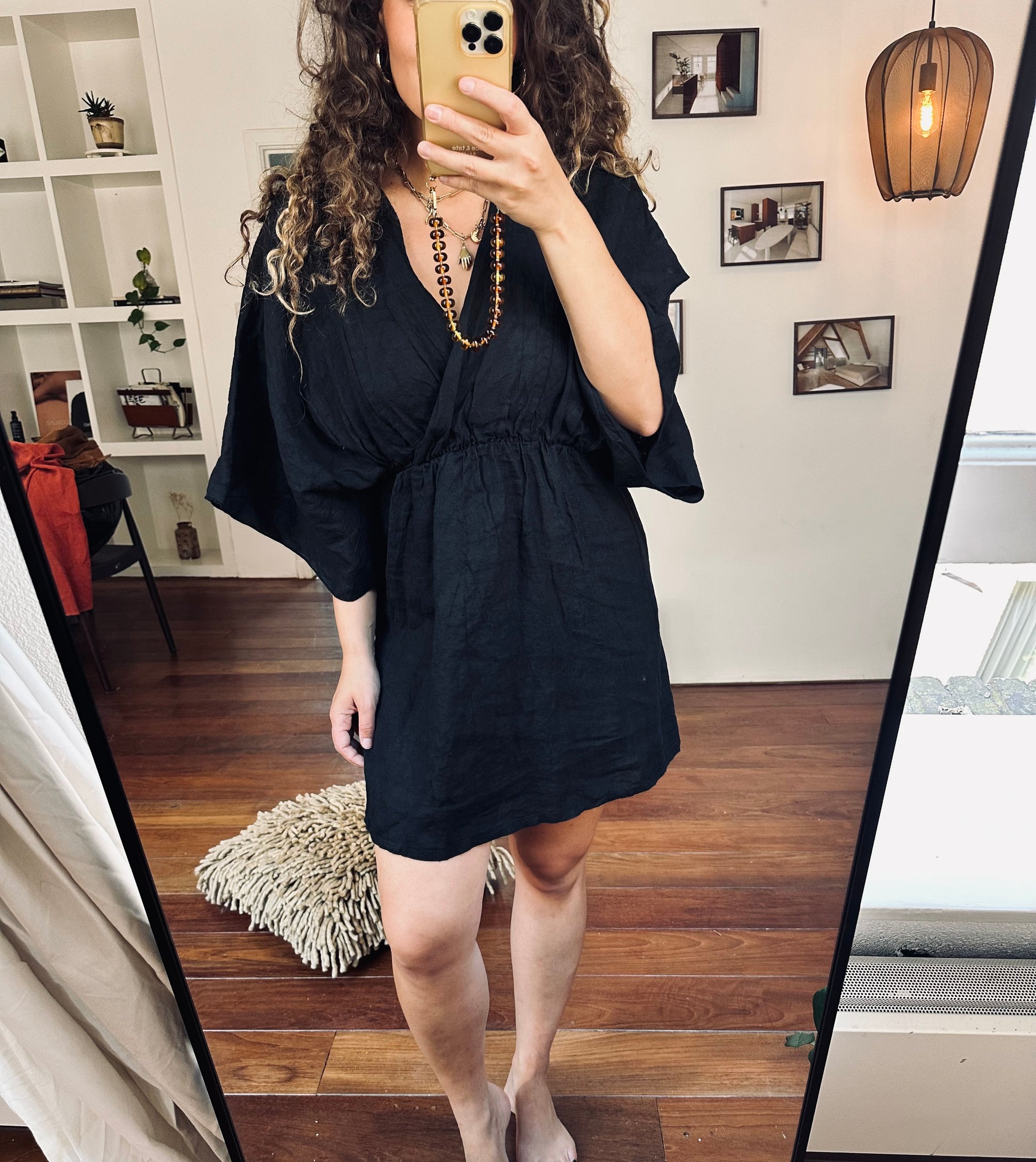 Prachtige linnen jurk! Fijne pasvorm, doordat hij op de perfecte plek in je taille valt.
